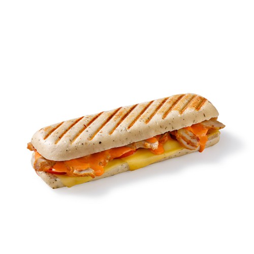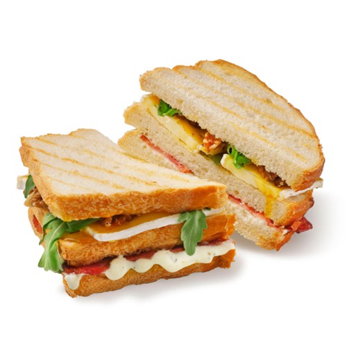 Belegd met: gerookte kipfilet • bacon • ei • tomaat • komkommer • mix van ijsbergsla en rucola • mayonaise - 1 stuk